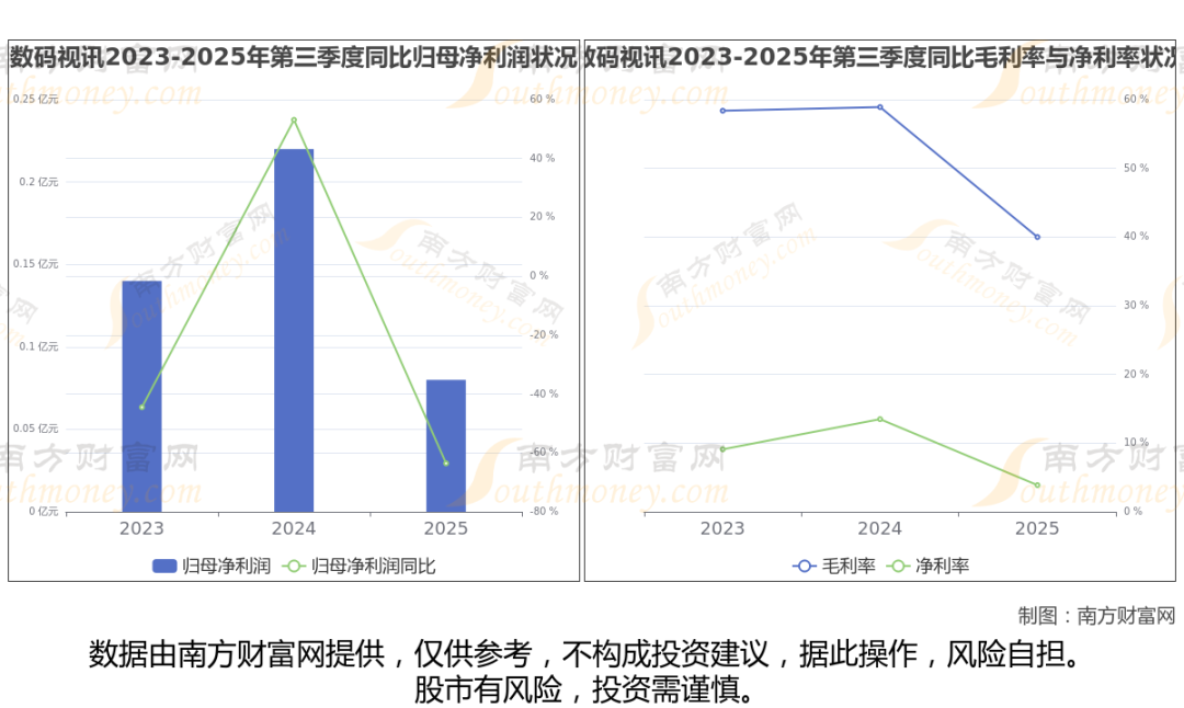 数码视讯2025年第三季度季报显示,公司实现净利润792.04万,同比增长-63.55%;毛利润为8019.26万,毛利率39.99%。
