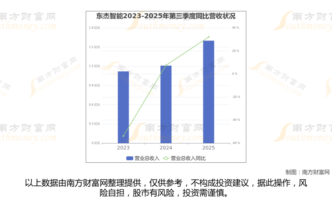 (如上图)东杰智能披露2025年第三季度报告,报告期实现营收1.6亿元,同比32.04%。