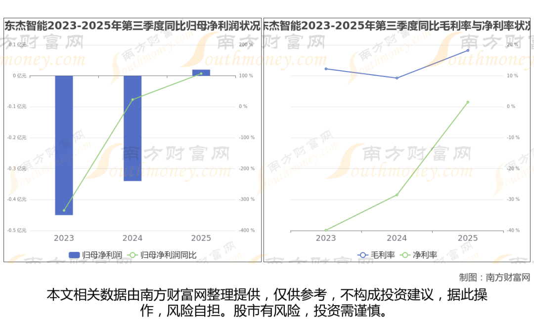 2025年第三季度季报显示,东杰智能公司实现净利润240.75万,同比增长107%;毛利润为2905.5万,毛利率18.2%。