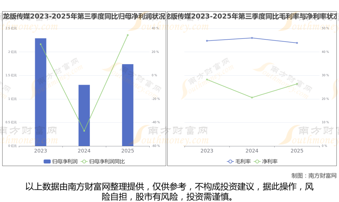 公司2025年第三季度季报显示,龙版传媒实现净利润1.74亿,同比增长34.35%;毛利润为2.89亿,毛利率43.83%。