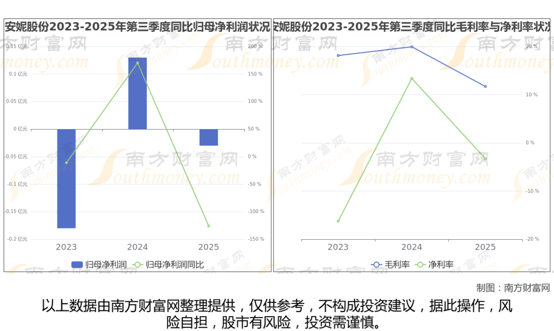 2025年第三季度季报显示,安妮股份公司实现净利润-334.96万,同比上年增长率为-125.96%,毛利率11.71%。