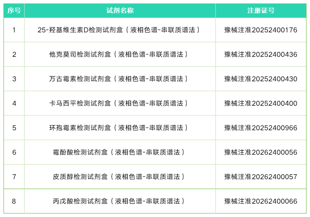近日,安图生物液相色谱-串联质谱试剂产品:丙戊酸检测试剂盒(液相色谱-串联质谱法)获得河南省药品监督管理局颁发的医疗器械注册证。目前,公司已拥有八款液相色谱-串联质谱试剂产品,为临床精准用药提供技术支撑。