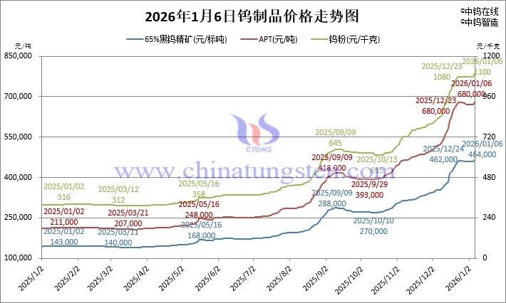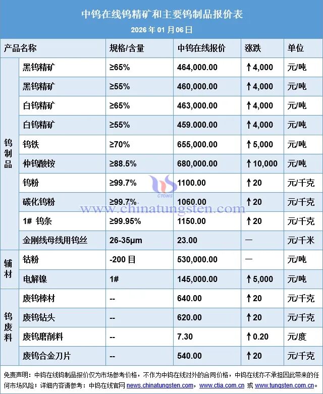 钨价全线强势上扬,市场热度再度升温。一方面是由于江西地区行业机构和大型钨企新一轮报价上调,提振市场信心;另一方面是由于近期贵金属市场和同为难熔金属的钼价走强,形成共振效应。此外,钨废料市场止跌反弹对钨原料端情绪亦有修复。因生产成本持续上升,部分硬质合金企业在年初再次发布涨价函。