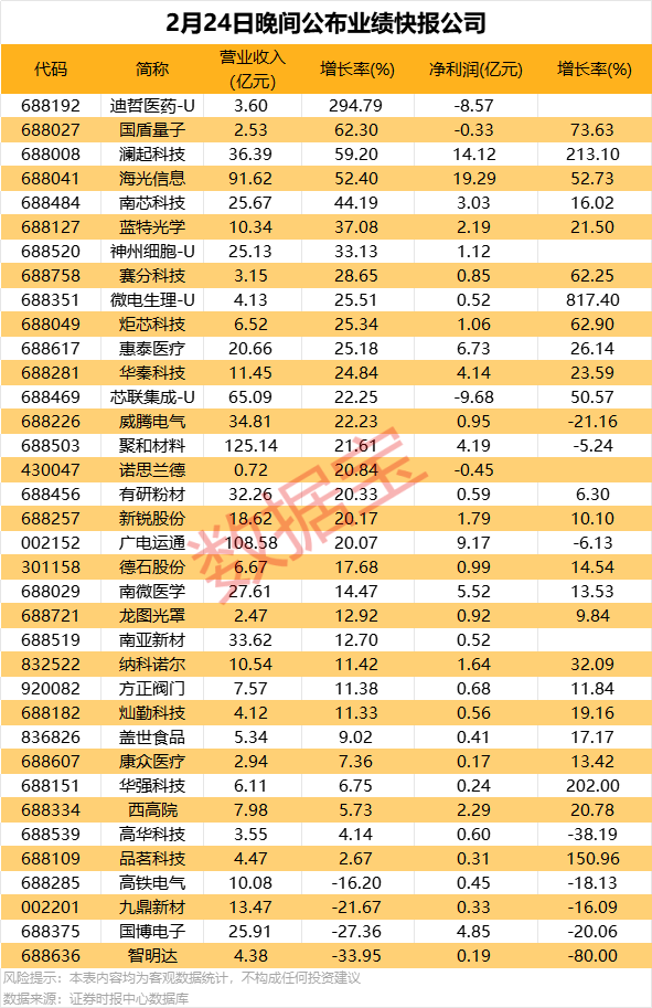 财报披露逐步进入密集披露期,截至18:30,已有近40家公司发布业绩快报,微电生理-U、澜起科技、华强科技等2025年净利润增幅均超100%。