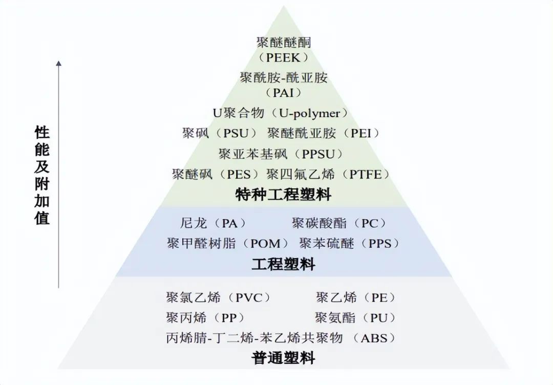 PEEK属于合成树脂,产业链上游是化学原料和化学纤维制造行业,原材料主要包括氟酮(最关键)、对苯二酚、二苯砜和碳酸钠等,添加剂包含碳纤维、玻璃纤维和PTFE;中游包括PEEK颗粒、PEEK粉末、PEEK增强颗粒等PEEK产品制造;下游为各类终端领域。