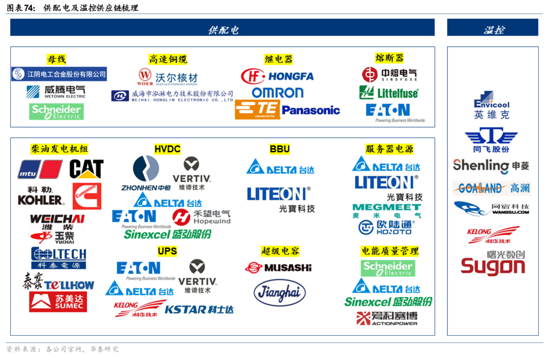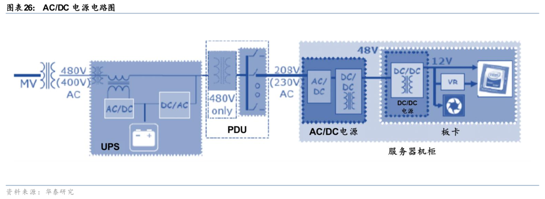 供配电环节:柴发/服务器电源/HVDC/UPS等受益于电力需求扩容