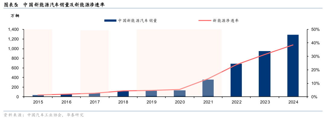 3)2019~2021 年,锂电设备指数再度大涨,累计涨幅高达 223%(超额收益率157%),三年间分别实现37%、73%、28%的涨幅;中国新能源汽车年销量从121万台增长至352万台,新能源渗透率从4.7%提升至13.4%。随着补贴退坡力度加大,行业向市场驱动过渡,特别是2020年下半年开始,技术突破叠加车型驱动,全球新能源汽车放量。