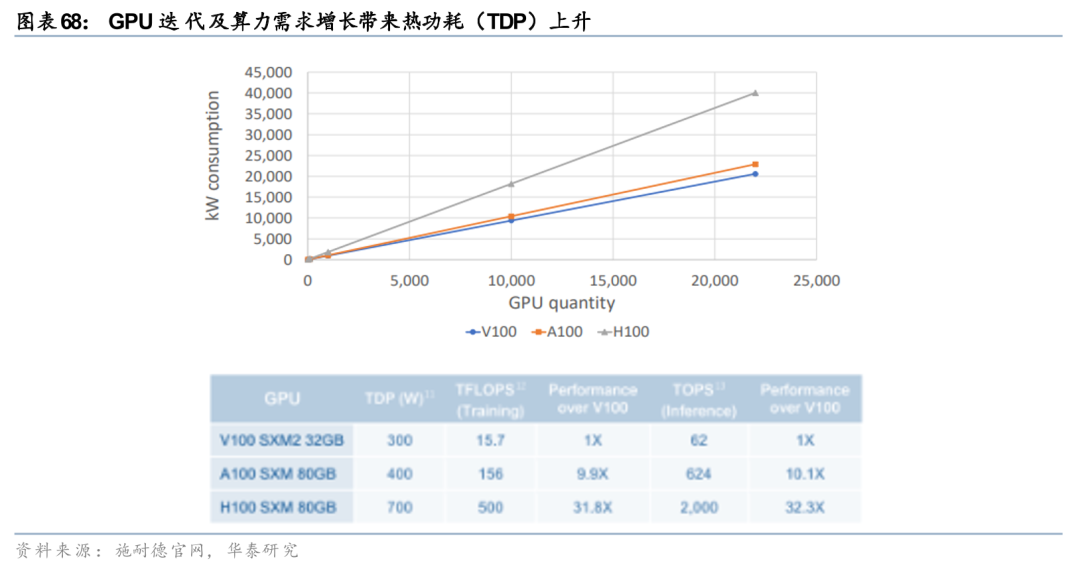 在数据中心的设备中,在AI升级背景下我们建议关注供配电与温控两个环节。在供配电方面,主要包括灾备电源(柴油发电机组)、服务器电源(AC/DC电源)、备用电源(UPS、HVDC、BBU、超级电容)、电能质量管理等产品,本报告的第二部分将围绕上述七种产品展开介绍。随着电力需求增长,作为保障电力系统稳定运行的重要因素,温控也成为数据中心关键硬件环节之一。在温控方面,主要关注液冷的发展趋势,本报告的第三部分将聚焦于液冷。