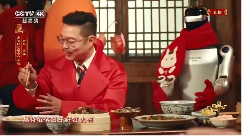 在今年央视春晚宜宾分会场舞台上,配合默契的机器人“捞面师”MagicBot Gen1和“送餐员”,便依靠魔法原子全栈自研技术支持。