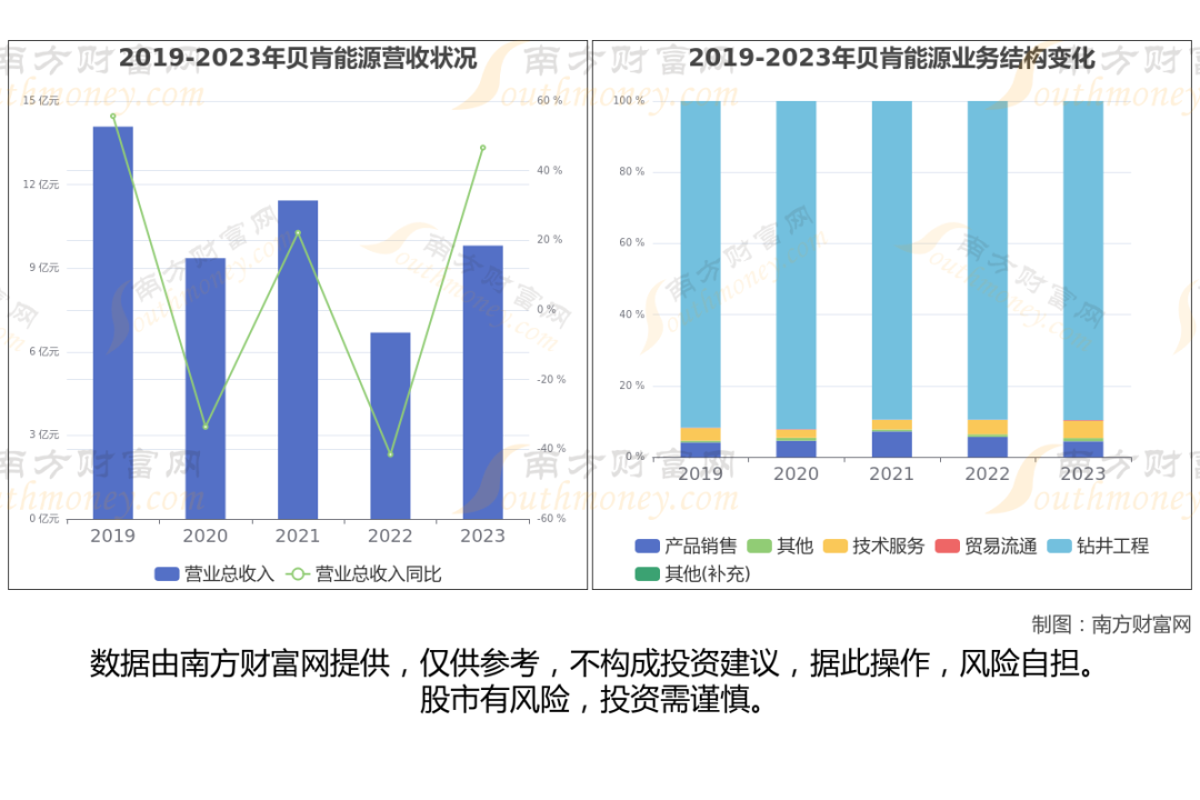 贝肯能源于2016年12月8日在深圳证券交易所上市,公司主营业务为为客户提供钻井总承包、压裂、化工产品销售及井控装置和钻具等的检测、维修等一揽子技术服务。