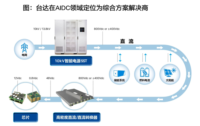 定位解决方案商,而非单纯的零部件商:台达自2010年开始转型解决方案商,加大对系统性、前瞻性业务的研发投入,在数据中心领域有广泛的技术储备,如HVDC与SST。台达商业模式从做零部件、ODM〈委托设计制造〉,转向做解决方案、大型系统 AI时代定位为综合方案供应商:公司在AI数据中心领域独家供应“从电网端到芯片端”的全方位解决方案,不仅提供SST Power Rack的硬件,还可以整合氢能储能、光伏微电网等,能供应除了服务器外、包括土建在内的全套数据中心建设方案,具备系统级的理解。 解决方案商会有零部件代工需求:台达作为系统的整合者,会有部分零部件需要外采,为上游厂商带来市场机会。