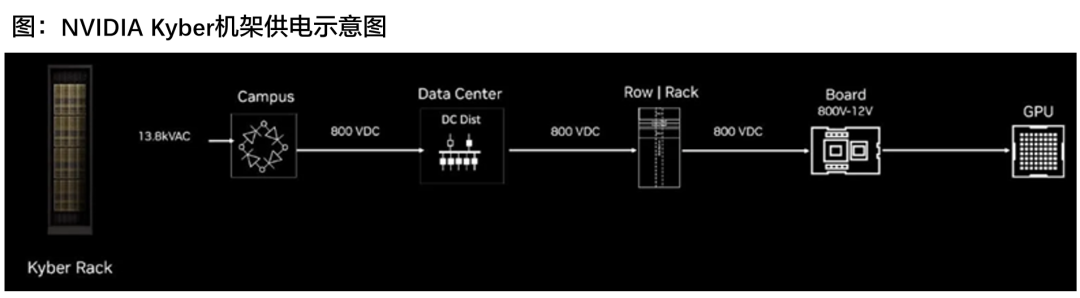 1)NVIDIA 800V HVDC 架构可以提高效率和系统可靠性。通过使用工业级整流器,在数据中心周边将 13.8 kV AC 网电源直接转换为 800 V HVDC,消除了大多数中间转换步骤;同时,这种方法还显著减少了电源链中需要的带风扇的电源单元 (PSU) 的数量,更少的 PSU 和风扇可提高系统可靠性、降低散热并提高能效。