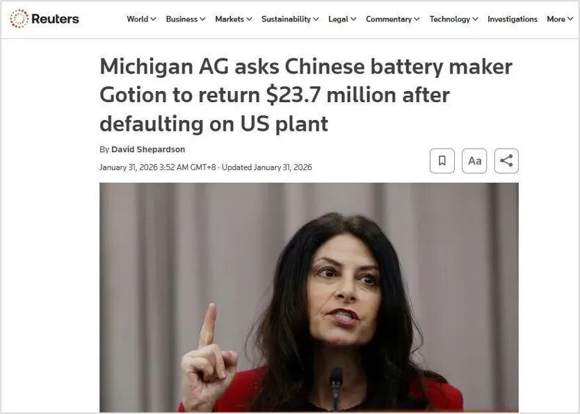 国轩高科(SZ:002074)在美国建厂的遭遇,将中国新能源企业赴美建厂的尴尬与无奈摆上台面。华夏能源网(公众号hxny3060)获悉,1月30日,美国密歇根州总检察处长丹娜·内塞尔(Dana Nessel)发函,要求中国电池企业国轩高科美国子公司(Gotion Inc)退还2360万美元(约合人民币1.65亿元)州政府补贴。国轩高科是全球动力电池龙头,2025年在动力电池装机量排名中位列全球第五、国内第四,磷酸铁锂装机量国内前三。国轩高科也是全球极少数拥有全产业链制造能力的电池企业之一,主营磷酸铁锂材料及电芯、三元材料及电芯、动力电池组、储能电池组及电池管理系统等。2022年10月,国轩高科宣布赴美建厂计划,拟投资24亿美元在密歇根州建设一座大型动力电池工厂,该项目有望成为密歇根州史上最大的电动车电池投资项目。但是,该项目却因政治因素和各种颠倒黑白的指控,推进起来困难重重,最终无奈终止。如今不仅项目停了,到手的补贴还被追讨。美国市场拥有巨大的装机规模和高毛利率,是中国储能企业梦寐以求的出海地。目前至少已有7家中国储能企业宣布或已经赴美建厂,规划产能达90GWh,投资总额合计57.52亿美元。但是,各种非市场障碍让中企频频撞上“暗礁险滩”,令中企出海陷入迷茫:在当前形势下,去美国建厂还走得通吗?要想在美国市场拿到份额,中国储能企业该如何突围?国轩高科在美国密歇根州的项目,起源要从3年前讲起。2022年10月,美国时任总统拜登签署《通胀削减法案》(IRA)后两个月,密歇根州政府宣布,国轩高科将在大急流城(Big Rapids)附近的格林镇(Green Township)投资23.64亿美元(约合人民币167.8亿元)建设一座电池材料工厂,计划年产正极材料15万吨,负极材料5万吨,预计将为当地创造2350个工作岗位。为了促成这一项目,密歇根州开出了总额近8亿美元的补贴支票:梅科斯塔郡(Mecosta County)、格林镇和大急流城三地政府联合提供为期30年、最高达5.4亿美元的税收抵免;密歇根州经济发展公司(MEDC)提供包括1.75亿美元现金补贴在内的激励方案;此外,国轩高科还将享受5000万美元场地补贴。2023年10月,国轩高科发布公告,确认在密歇根州投资建设电池材料项目,并已完成该项目建设用地购买合同的签约及与州政府的协议签署。但是,在此期间,当地居民以担心电池材料工厂的建设会破坏湿地为由,发起抗议活动,当地共和党代表也适时地介入进来,将该项目当着抨击民主党的靶子,指责执政的民主党“用纳税人的钱资助中国企业”。2023年9月起,格林镇拒绝向该项目供水,项目建设不得不中断。之后,国轩高科起诉格林镇,结果却是“赢了官司,输了交情”,对方仍拒绝配合,双方关系颇为紧张。2025年9月,MEDC向国轩高科发出违约通知,指“项目连续120天无合规实质性进展”,未兑现投资与建设承诺。2025年10月,密歇根州政府正式宣告终止该电池项目,撤销全部未兑现的激励政策,并启动已拨付资金的追回程序。“若未按时退还补贴,州政府或将启动土地止赎程序进一步追责。”密歇根州总检察长达娜·内塞尔在1月30日发出的公函中,下达最后通牒。唯一值得庆幸的是,此次密歇根州政府追讨的2360万美元补贴,基本等同于国轩高科对该项目的已投入资金额,仅占投资计划的1%,为密歇根州政府拨付的土地收购、场地平整及前期设计费用,投资损失尚在可控范围。当前,中国电池、储能企业正掀起一轮规模空前的出海建厂潮。仅2025年至2026年1月,就有1223亿元资金投向海外,涉及22个海外动力电池、储能制造项目。美国作为全球第二大储能市场,至今已吸引了至少7家中国储能企业在此布局,包括海辰储能、国轩高科、远景动力、隆基绿能(SH:601012)、阿特斯(SH:688472)、天合光能(SH:688599)、亿纬锂能(SZ:300014),规划产能合计90GWh,整体集中于电池和储能系统环节。其中,三家已投产,包括国轩高科位于伊利诺伊州,规划产能40GWh的储能工厂;海辰储能位于得克萨斯州梅斯基特市的10GWh储能电池模组及系统制造工厂,以及远景动力位于田纳西州新增的7GWh储能电池产线。中国储能企业争相涌入美国市场,看中的是此处蕴含的巨大装机需求。在AI算力猛增的刺激下,2025年美国用电需求激增,进而带动了新能源以及储能装机的增长。据调研机构Wood Mackenzie公司数据,2025年前三季度,美国市场部署的储能系统装机量达到12.6GW,已经超过2024年全年新增规模。而未来5年,在储能项目经济性和政策激励的推动下,美国将部署92.9GW/317.9GWh储能系统。此外,美国市场还有着远超国内的高毛利率。2025年根据海辰储能、天合光能披露的数据,它们在美国市场的毛利率均超30%。当国内市场已经卷到没有利润,美国市场是难得的利润富矿区。当然,上述优势只是“硬币”的一面,“硬币”的另一面是,美国市场隐藏着不容忽视的巨大风险。一是美国建厂的成本极高。一位业内人士告诉华夏能源网,在国内建一座电池厂从审批到投产只需要1-2年,而在海外可能长达3-4年。“美国的建材、人工、水电等成本都远高于国内,折算下来,单GWh电池生产线的建设成本是国内的至少3倍。”此外,美国本地化生产还面临盈利空间被两头压缩的困境。按照名义美元计,美国工人的平均工资是中国工人的5-6倍。而在电动汽车、太阳能光伏组件等制造行业中,中国工人的人均实物产出却是美国工人的2-3倍。这使得储能工厂的在美回本周期被大幅拉长。“高成本压力