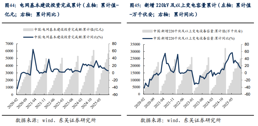 n一次设备:25年第六批招标来看,变压器/组合电器/电抗器/互感器/电容器/断路器/隔离开关/消弧线圈/开关柜需求同比分别为 110/ 52%/ 61%/ 29%/ 43%/ 24%/ 42%/ 57%/ 20%,需求整体来看保持了稳健增长,25年全年来看,除断路器外,一次设备均实现了10-30%的稳健增长。