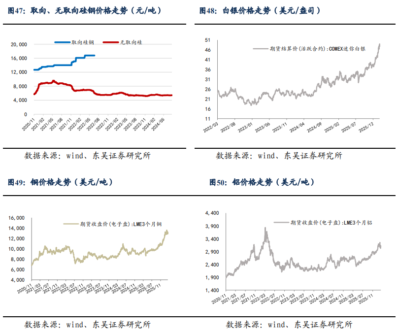 2025年12月制造业数据继续承压,12月制造业PMI 50.1%,前值49.2%,环比 0.9pct:其中大/中/小型企业PMI分别为50.8%/49.8%/48.6%,环比 1.5pct/ 0.9pct/-0.5pct ;2025年12月工业增加值累计同比 6.4%;2025年12月制造业固定资产投资完成额累计同比 0.6%。2025年1-11月电网累计投资5604亿元,同比增长5.9%。