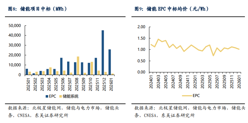 n据我们不完全统计,2026年1月储能EPC中标规模为25.8GWh,同比 190%。