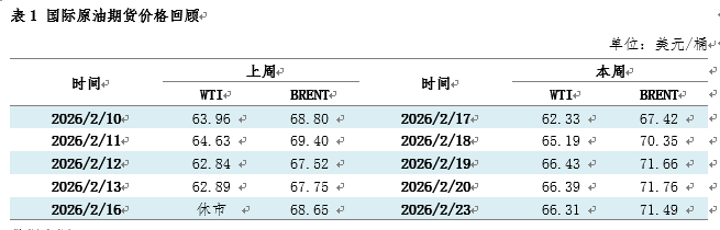 春节假期期间,国际原油价格整体偏强波动,2月13日美原油62.89美元/桶,2月23日美原油价格66.31美元/桶,涨幅3.42美元/桶,或者5.4%。