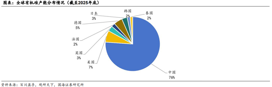 海外有机硅产能面临退出预期。我国是全球最大的有机硅生产国,产能占全球70%以上。受欧洲能源成本高企、碳税及环保法规趋严、以及全球供需失衡等系统性困境影响,海外部分装置已陆续关停。例如,陶氏化学实施战略收缩,计划于2026年中期永久关闭其英国巴里工厂,涉及年产14.5万吨硅氧烷产能。目前海外产能累计退出规模近30万吨。鉴于陶氏、埃肯、瓦克等国际巨头在成本与产业链配套方面竞争力相对薄弱,预计未来海外有机硅产能仍将维持收缩态势。
