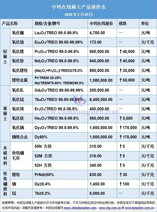 2026年2月25日稀土价格一览