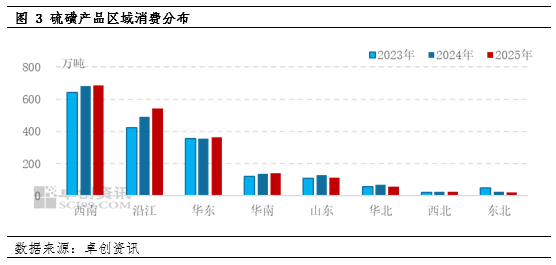 国内硫磺下游行业分布、区域消费结构及货物来源分析