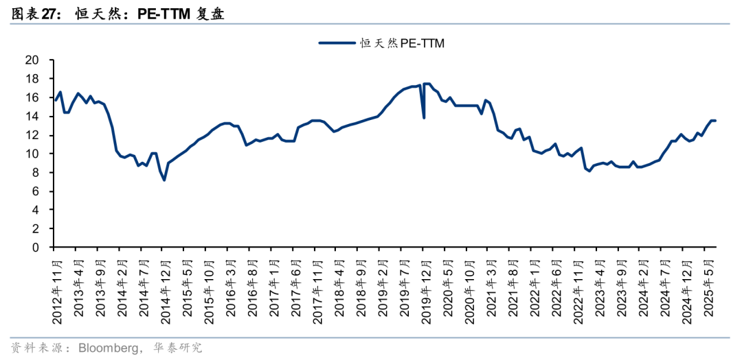 股价复盘:1)2015年之前(PE-TTM均值为12.8x):2013年发生恒天然乳清蛋白“肉毒杆菌”事件,恒天然启动全球召回,达能中止与恒天然的合作,索赔2.8亿欧元(后和解),恒天然CEO辞职,计提4.5亿纽币的善后费用,叠加13-14年全球乳制品价格指数(GDT)全脂奶粉价格快速下跌,2014财年恒天然利润大幅下滑,食品安全事件叠加基本面承压带动公司估值持续下探。2)15-18年(PE-TTM均值为12.5x):15-16年GDT全脂奶粉价格亦处于下行周期,随后17-18年贝因美业绩不及预期、带来恒天然报表端的大量减值,中国牧场出售亏损,此阶段公司PE-TTM估值呈现区间震荡;3)19-21年(PE-TTM均值为15.3x):此阶段恒天然的战略收缩初见成效,出售中国牧场、澳洲资产,加速化债,同时餐饮服务业务的收入占比有所提升,毛利率的稳定性改善,PE-TTM估值较前一阶段呈现小幅修复;4)22-24年(PE-TTM均值为10.0x):2022年GDT全脂奶粉价格同比上涨,但23-24年全球需求疲软(尤其是中国的进口量同比下滑明显),使得23-24年GDT全脂奶粉均价连续回落,带动恒天然2024财年的收入及净利润均呈现同比下行态势,PE-TTM估值亦有所下行,但自从2024年年中公司PE-TTM估值已开启波动上行通道,显示出一定的估值韧性,2025年以来,公司的PE-TTM估值基本稳定在11x以上。