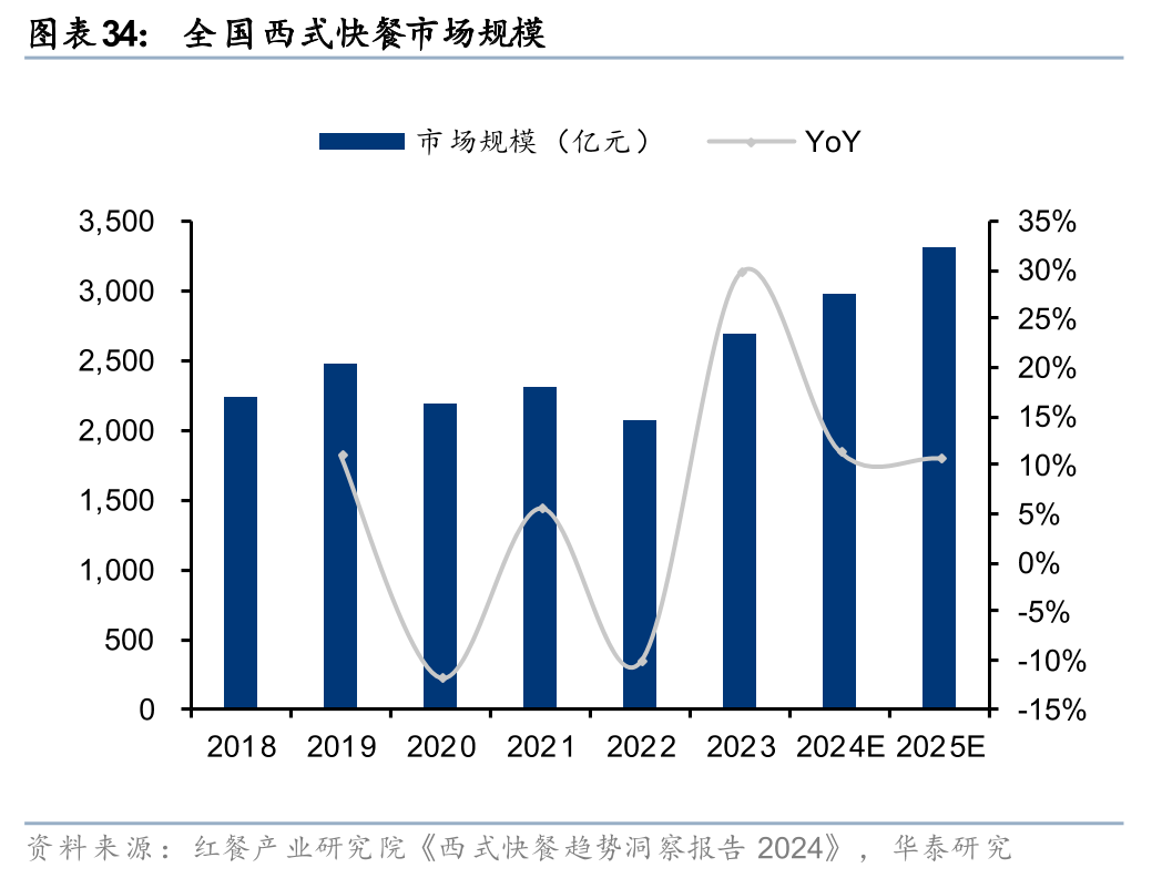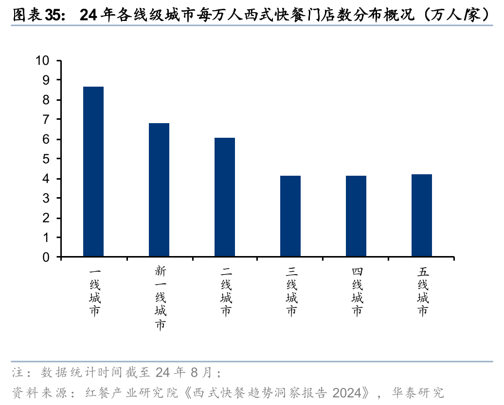 1)饮食西化的背景下,西餐行业有望维持稳健增长,从而为乳制品的餐饮消费提供持续的增长动力。西餐(正餐 快餐,尤其是西式快餐)与韩餐有较多的菜品使用奶酪/黄油等乳制品,包括意面、披萨、汉堡、沙拉、芝士火锅等。截至25H1末,以肯德基/麦当劳/必胜客为代表的西式连锁快餐店在中国的开店数分别达到11,938/7,784/3,856家(据窄门餐眼)。据红餐产业研究院《西式快餐趋势洞察报告2024》,2024年全国西式快餐门店数占比最高的城市仍为四家一家城市,上海/北京/广州/深圳的占比分别为3.2%/2.5%/2.2%/1.9%。随着国内下线城市消费水平的不断提升,西式连锁快餐店还有进一步下沉空间,开店数量仍将保持稳定增长。以百胜中国为例,其计划到2025年底,中国内地肯德基餐厅预计净新增800-1,000家,必胜客餐厅预计净新增400-600家。
