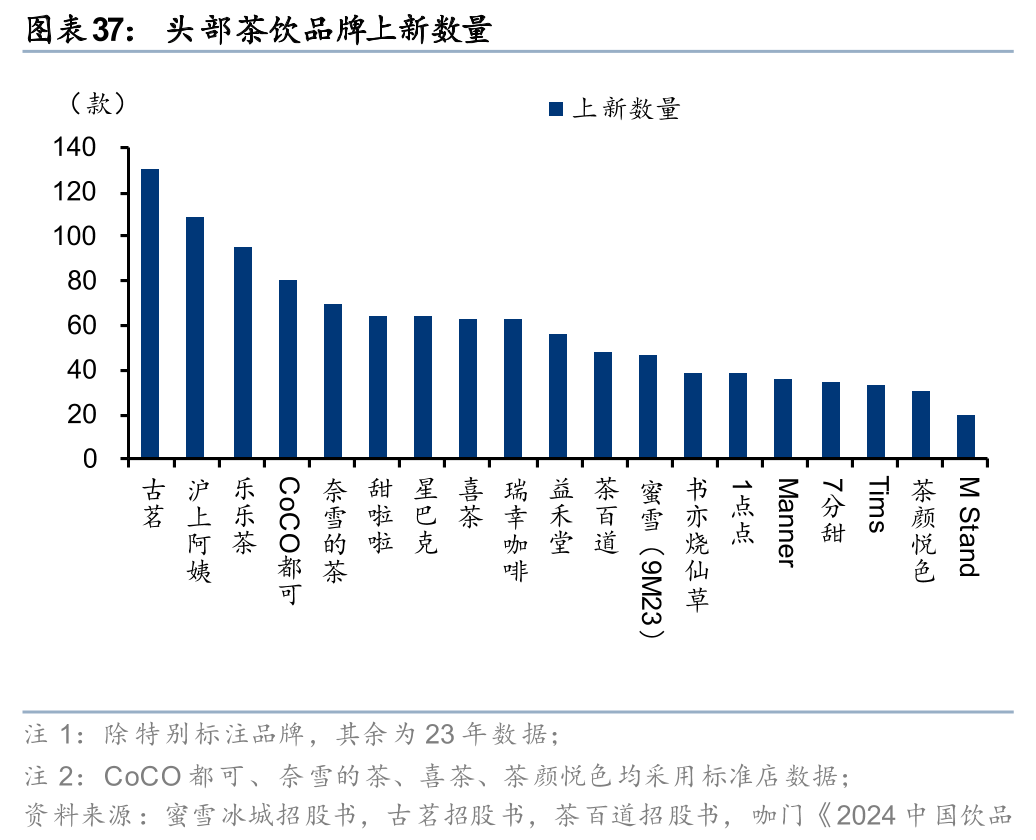 3)奶茶中使用奶酪&奶油产品的单品销量持续上升,有利于推动行业发展。我国奶茶行业的发展经历了“冲粉奶茶-桶装奶茶-手摇茶-现萃茶”这四个阶段,已由冲泡奶茶时代逐步过渡至现制奶茶时代,现萃茶以奶盖(含芝士奶盖)、奶基底为特色,增添风味的同时为奶酪、奶油等乳制品销售提供了较强的增长动力。据灼识咨询,以终端零售额计,2023年中国现制饮品市场规模为5,175亿元,至2028年,现制饮品规模将接近预包装饮品、达到11,634亿元,较2023年提升1.2倍,对应24-28年CAGR为17.6%,显示出旺盛的消费增长趋势。茶饮行业日益内卷的竞争环境中,主要品牌均保持较高的推新频率,推出季节性、区域性新品,以唤醒消费者和拓宽客群,在此过程中,奶盖、奶基底的口味或为致胜的关键。