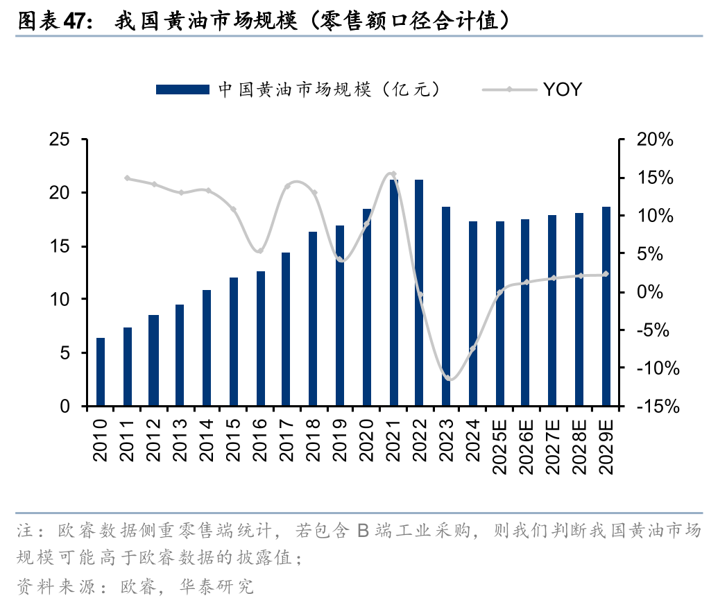 对比与我国饮食习惯接近的日本&韩国,我国两油一酪的人均消费量仍有较大提升空间。据欧睿,24年奶酪人均消费量对比来看:韩国(2.6kg)>日本(1.8kg)>中国(0.2kg);24年奶油人均消费量对比来看:日本(0.3kg)>韩国(0.2kg)=中国(0.2kg);24年黄油人均消费量对比来看:日本(0.8kg)=韩国(0.8kg)>中国(0.1kg)。