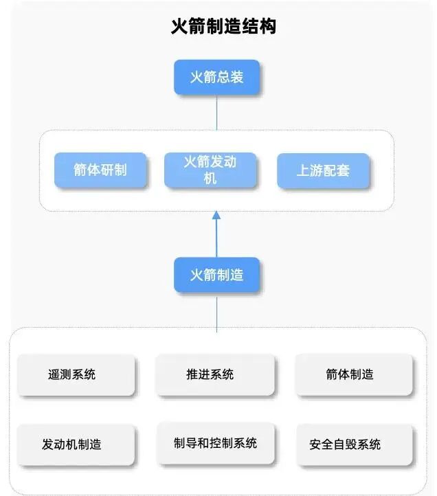 从可复用火箭价值占比来看,推进系统(发动机)占比约50%,是产业链核心利润区。贮箱/整流罩等箭体结构占比约15–25%,航电系统占比约8-15%。