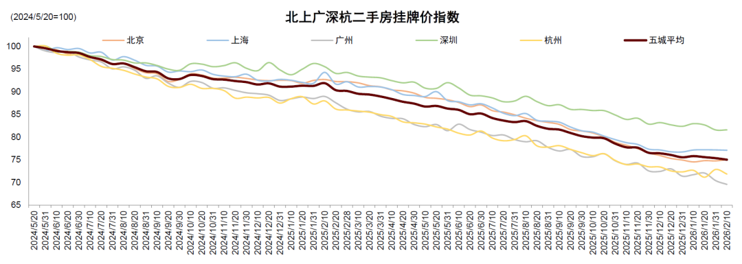 图表3:重点城市高频二手房挂牌价走势