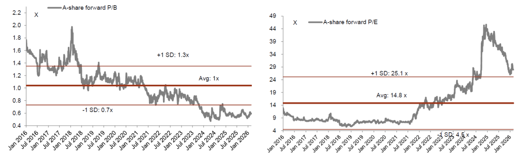 图表4:A股地产公司动态市净率和动态市盈率