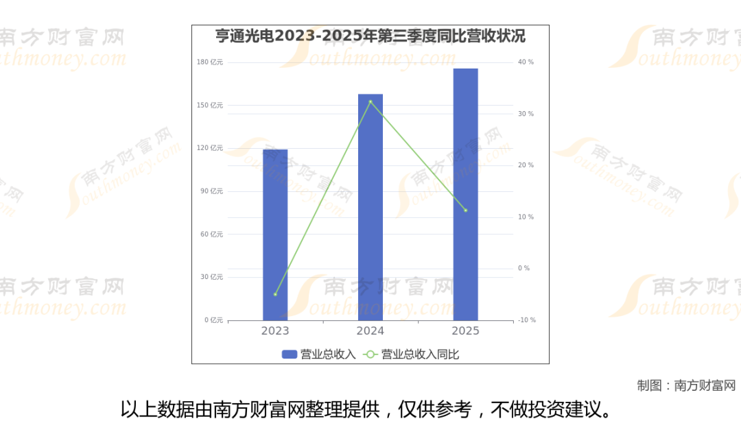 亨通光电2025年第三季度报告显示(如上图),公司实现主营业务收入175.72亿元,较去年同期增长11.32%。