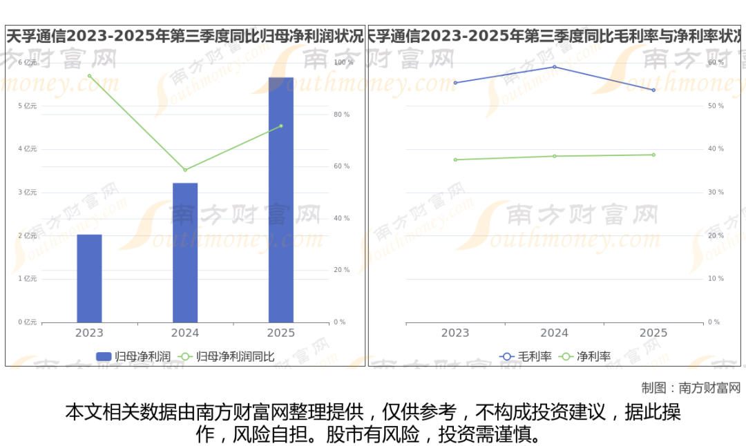 天孚通信2025年第三季度季报显示,公司实现净利润5.66亿,同比增长75.68%;毛利润为7.85亿,毛利率53.68%。