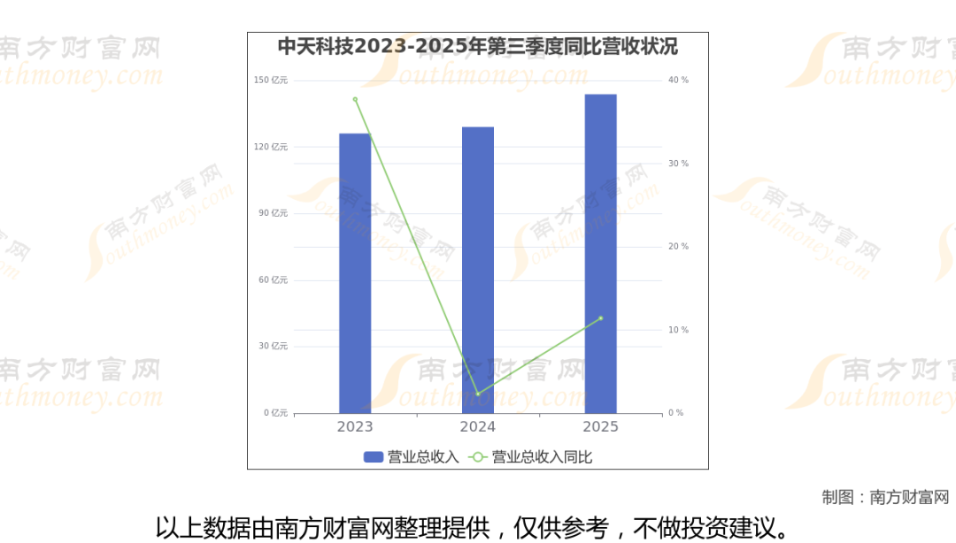 中天科技2025年第三季度报告显示(如上图),公司实现主营业务收入143.75亿元,较去年同期增长11.42%。