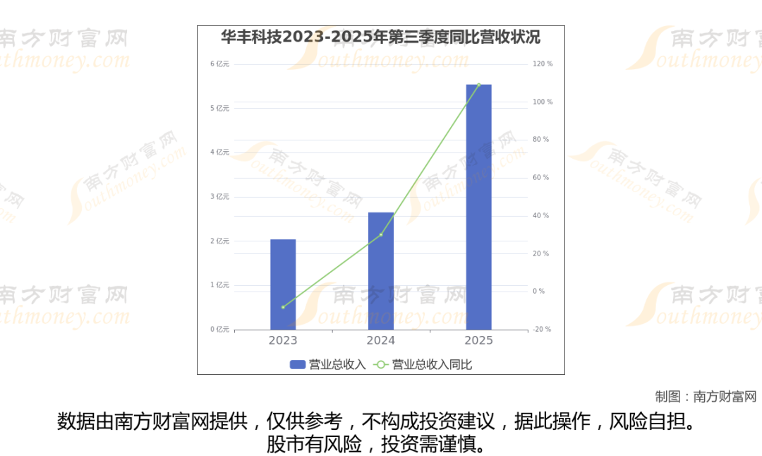 华丰科技2025年第三季度报告显示(如上图),公司实现主营业务收入5.54亿元,较去年同期增长109.07%。