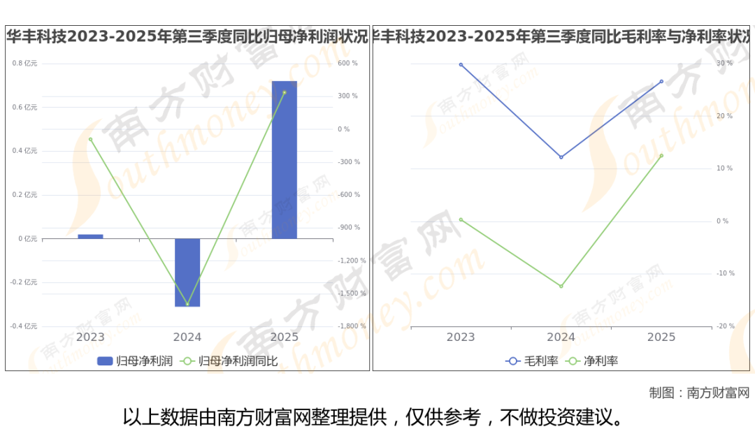 2025年第三季度季报显示,华丰科技公司实现净利润7237.79万,同比上年增长率为335.56%,毛利率26.6%,归属净利润7237.79万,同比增长335.56%。