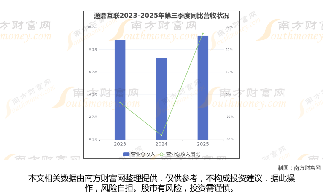 在2025年第三季度,通鼎互联的业绩表现(如上图),主营业务收入达到9.24亿元,实现了27.27%的同比增长率。