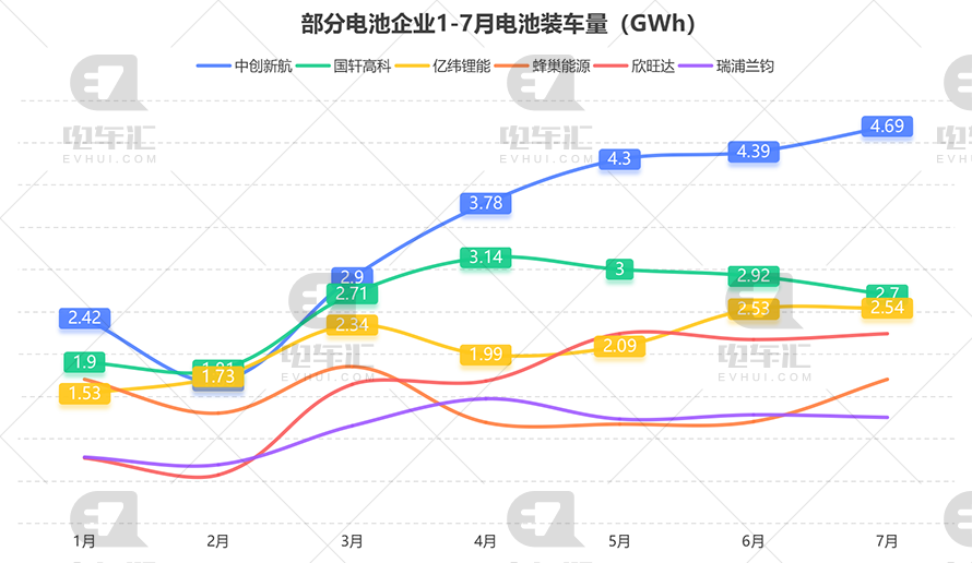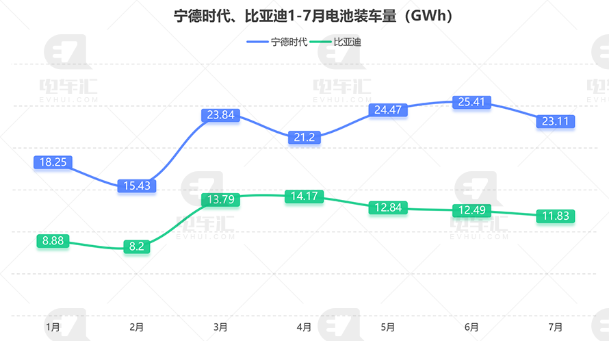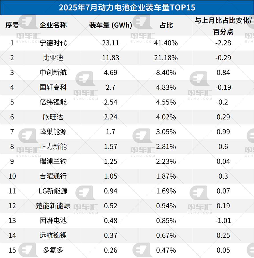 7月电池装车量统计:宁德时代23.11GWh、比亚迪11.83GWh、中创新航4.69GWh…