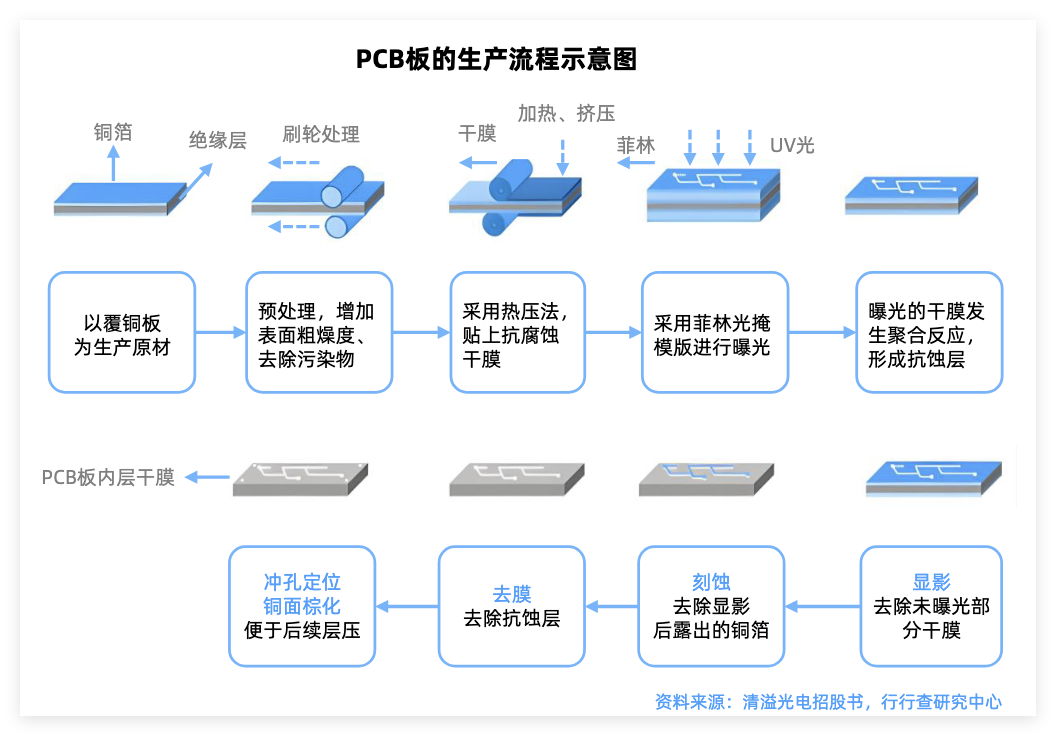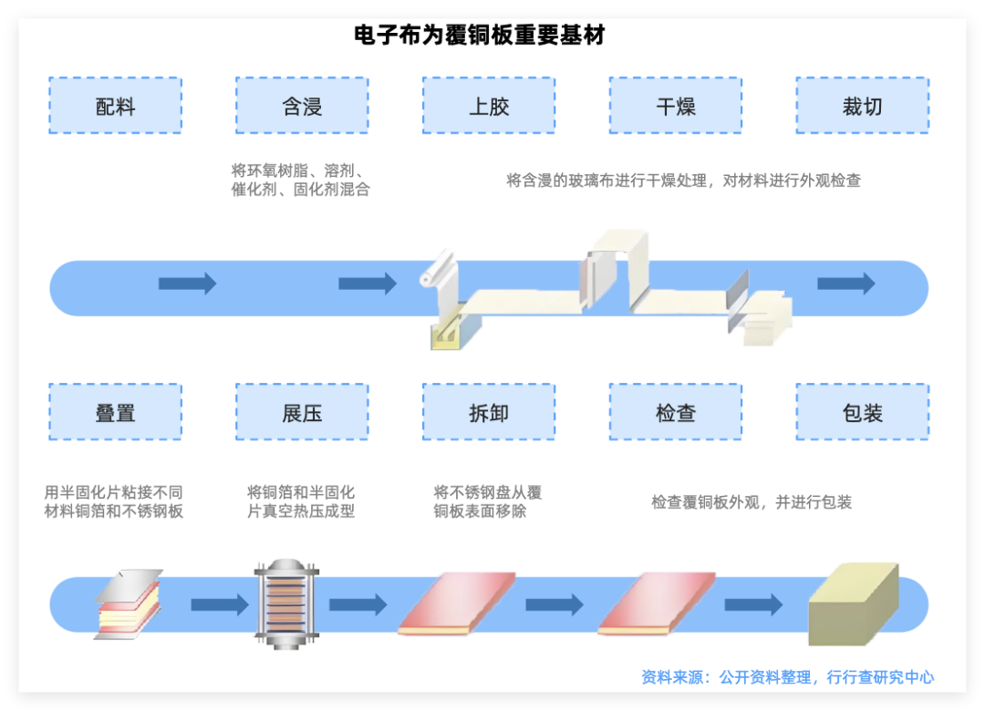 电子布是PCB的核心基材,由超细电子级玻璃纤维纱织造而成,与树脂复合后形成覆铜板(CCL),再通过蚀刻、钻孔等工艺制成PCB。