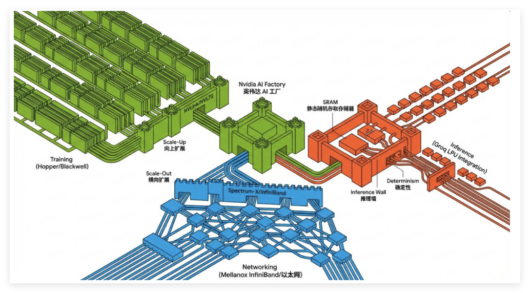英伟达将LPU架构中的确定性执行、低延迟通信等特性融入其Hopper/Blackwell架构GPU中,强化推理性能。此外,英伟达或计划将Groq的LPU硬件堆栈集成至Feynman芯片。