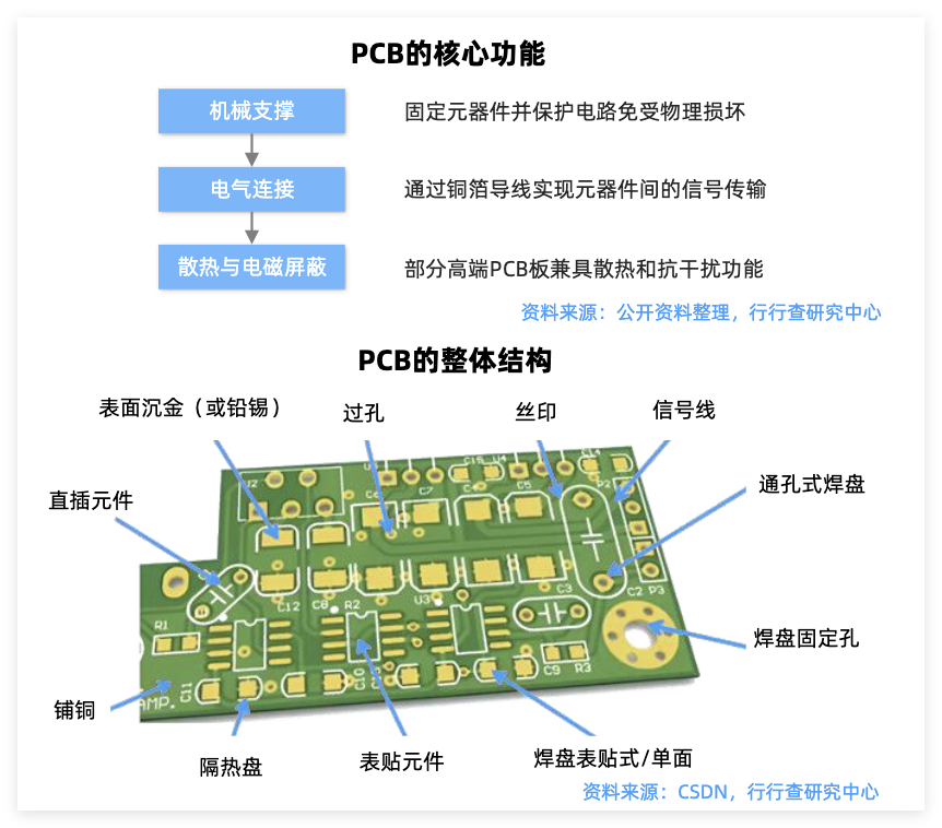 PCB承载CPU、GPU、LPU、存储芯片等所有电子元器件,提供物理支撑和电气连接。