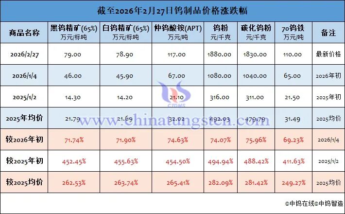 65%黑钨精矿价格报79万元/标吨,较年初涨71.7%。