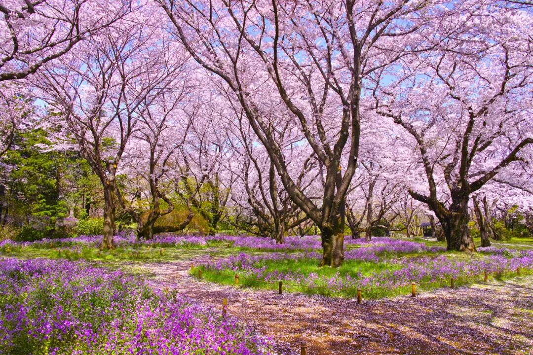 四月的天山花海,早樱和二月兰已经开了。