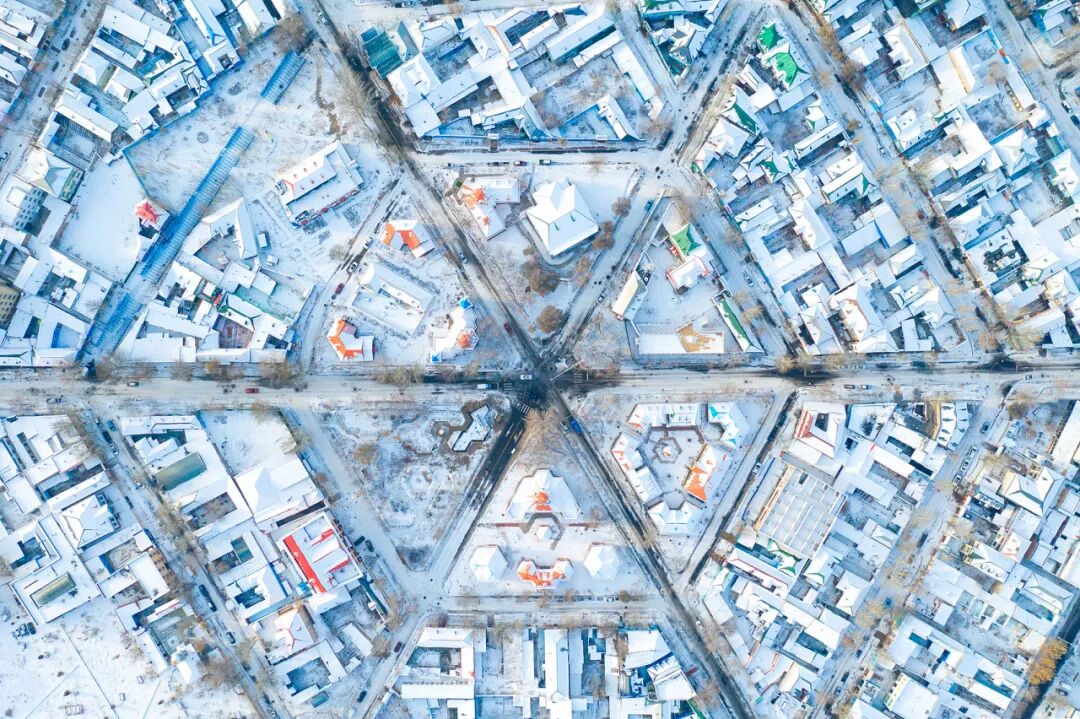 六条街道从中心广场辐射出去,像一个摊开的网。