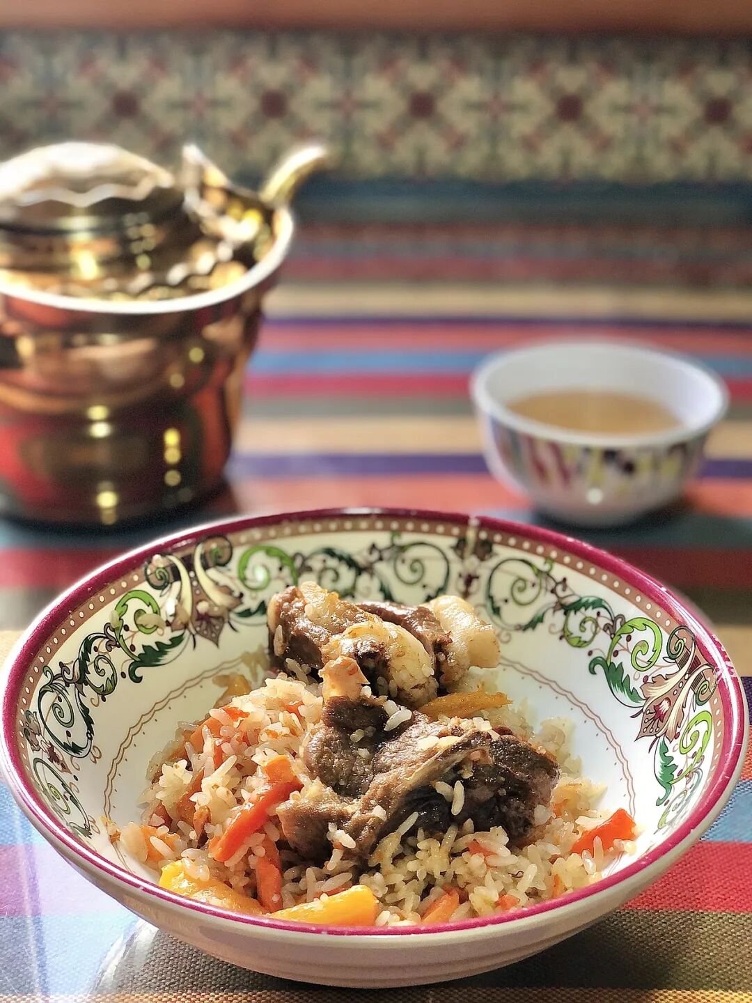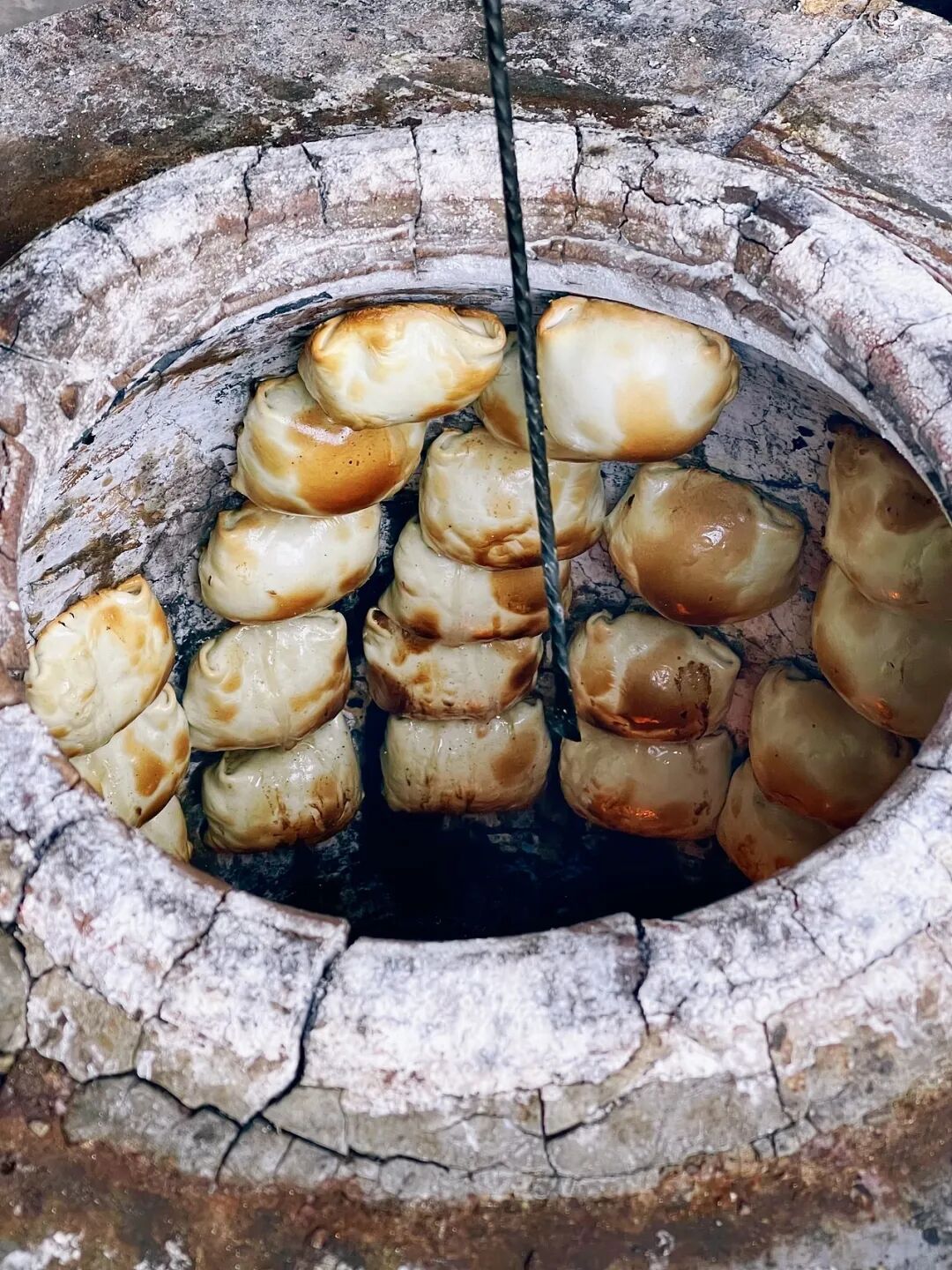 维吾尔族师傅会手把手教您——和面、揉面、擀开、戳花,然后“啪”地一下贴在馕坑壁上。等个十几分钟,一个金灿灿、热乎乎的馕就出炉了。趁热咬一口,外酥里软,满嘴都是麦香味。这个馕,比您在哪儿买到的都香——因为是您自己打的啊。