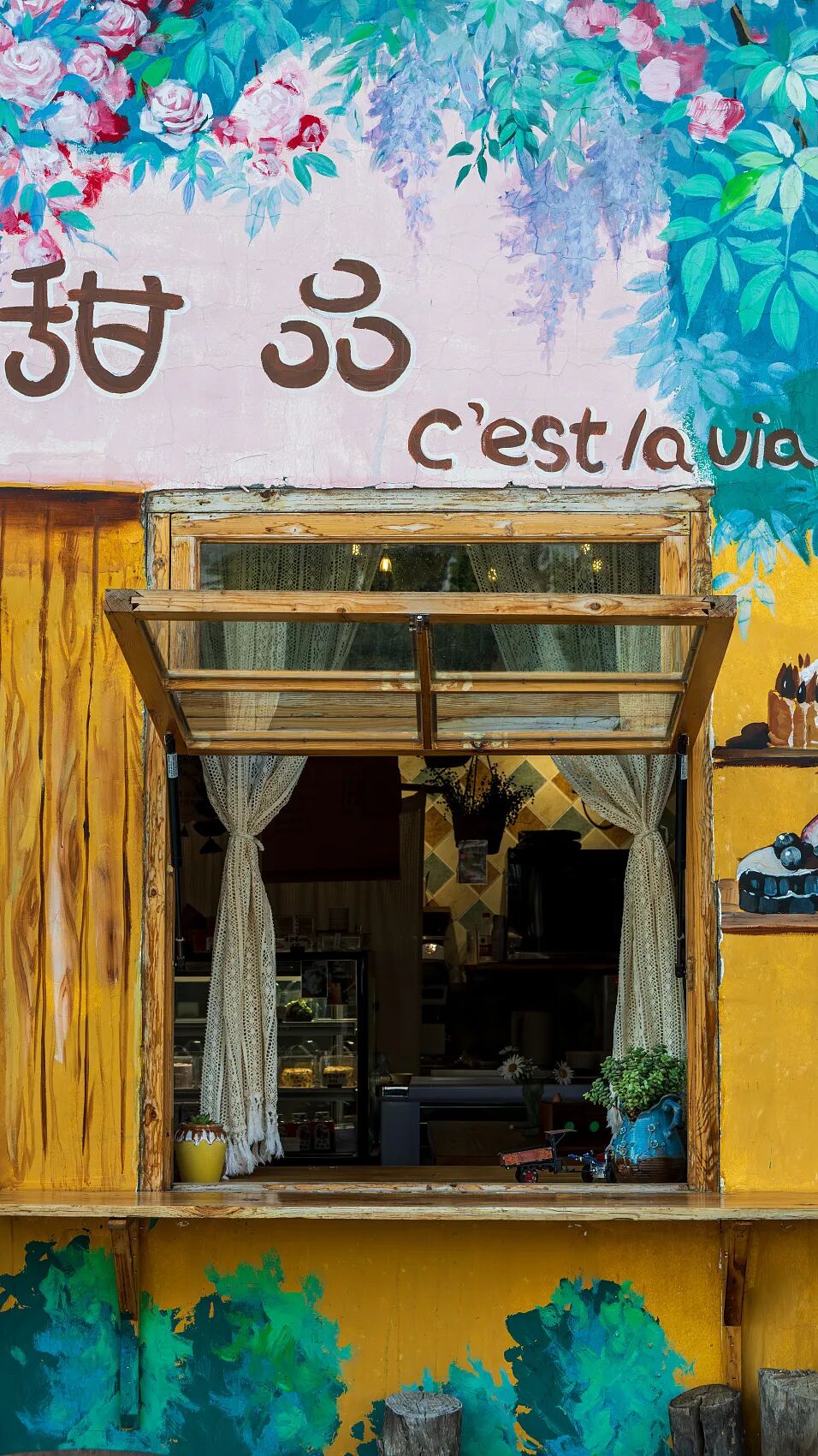 街道两旁的小木屋,刷成明黄色、天蓝色、薄荷绿,窗台上摆着花,门口坐着晒太阳的老人。