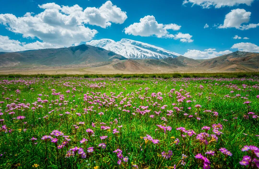 走在花海栈道上,脚下是成片的花,远处是还没化完雪的雪山。这种“一半是春,一半是冬”的景象,也只有四月的新疆能看到了。穿件颜色鲜亮的衣服,往花丛中一站,怎么拍都好看。