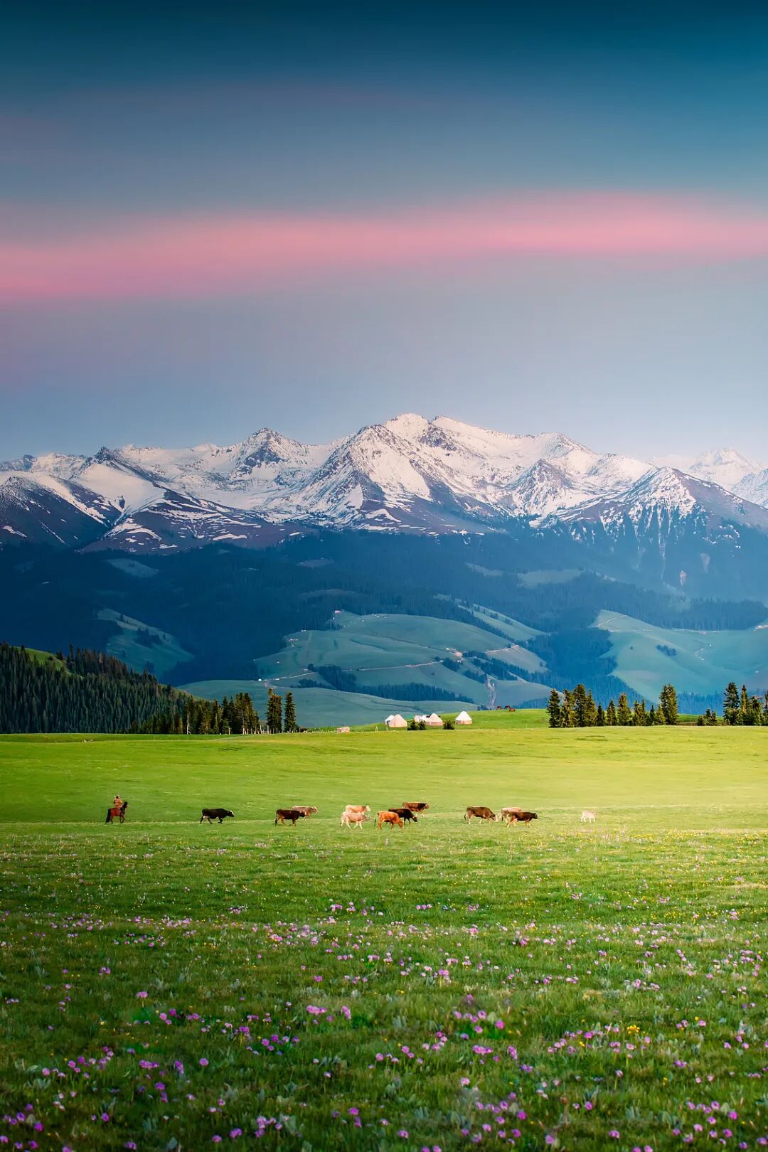 四月的新疆,冰雪刚化,花刚开,草刚绿。游客还不多,景点不用排队,拍照不用躲人。