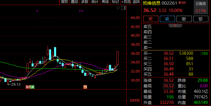 盘面上,华为算力概念反复走强,拓维信息(002261)涨停,超50万手买单封板,云天励飞涨超15%,华胜天成、润和软件、软通动力、常山北明、神州数码等纷纷跟涨。