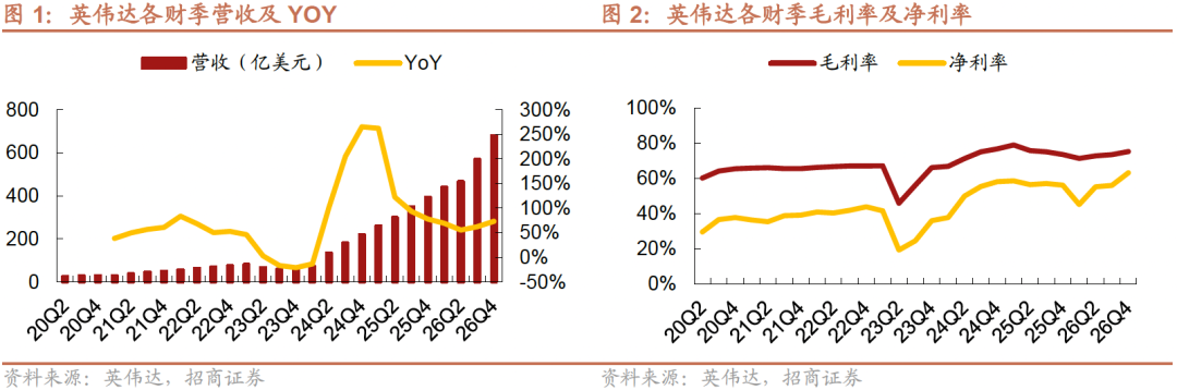 英伟达发布FY26Q4季报,本季营收681亿美元,同比 73%/环比 20%,创历史新高;non-GAAP毛利率为75.2%,同比 1.7pcts/环比 1.6pcts。综合财报及交流会议信息,总结要点如下: